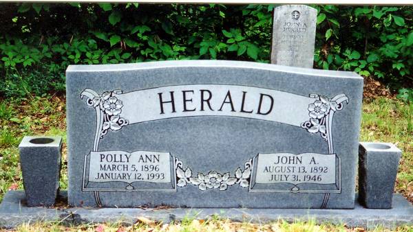 Double stone of John A. Herald b. 8-13-1892 d. 7-31-1946,