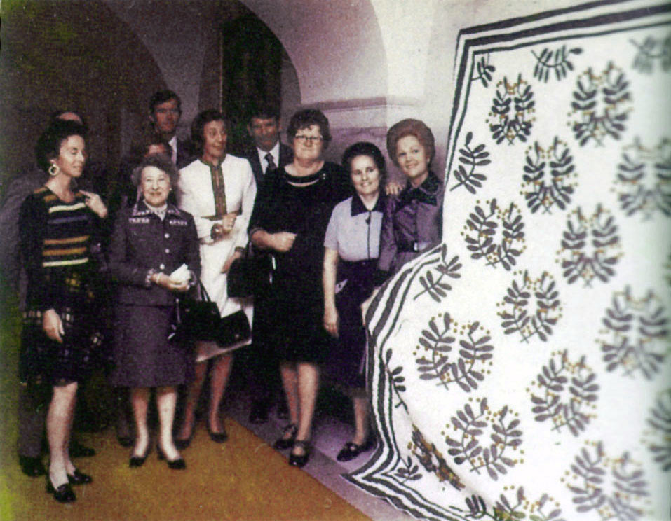 a cherry blossom quilt, to 1st lady Patricia Nixon at the White House.